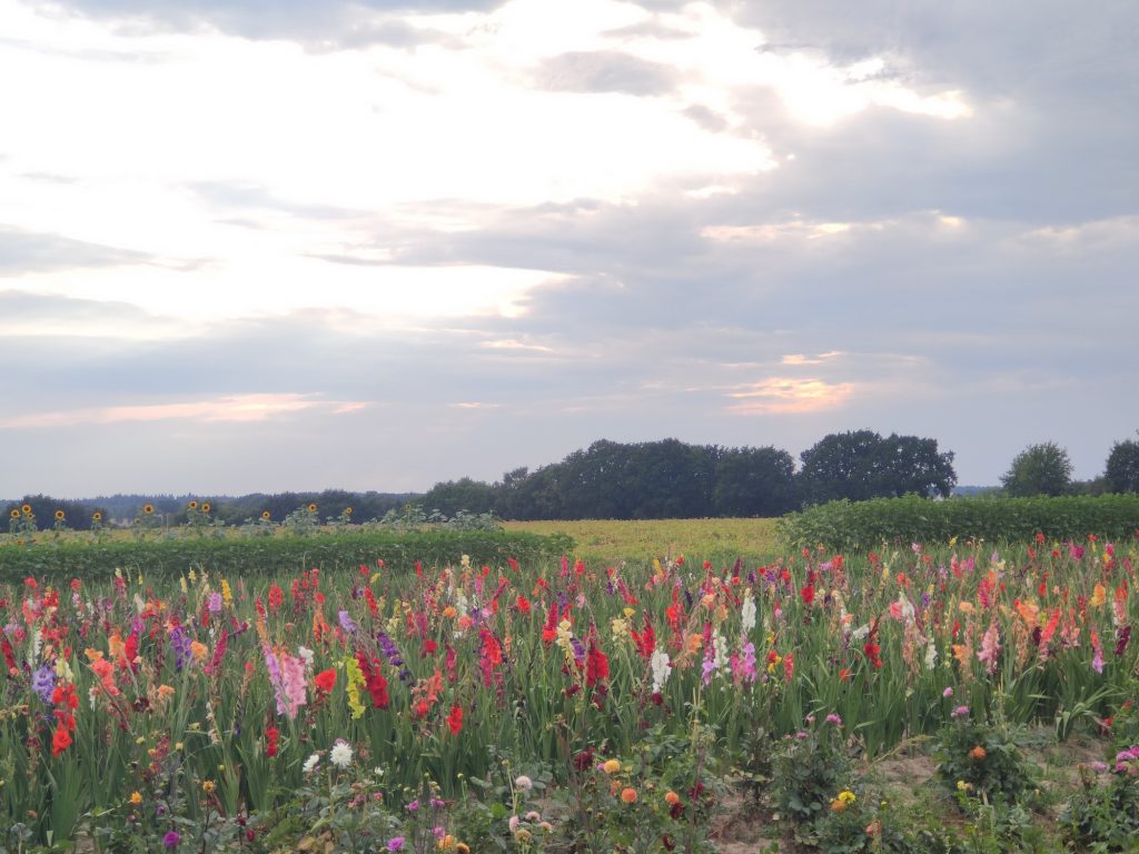 Ich kann noch nicht einmal sagen, was mich daran so fesselt. Vermutlich der Kontrast zwischen den Blumen im Vordergrund und dem etwas unwirklichen Wolkenhimmel.